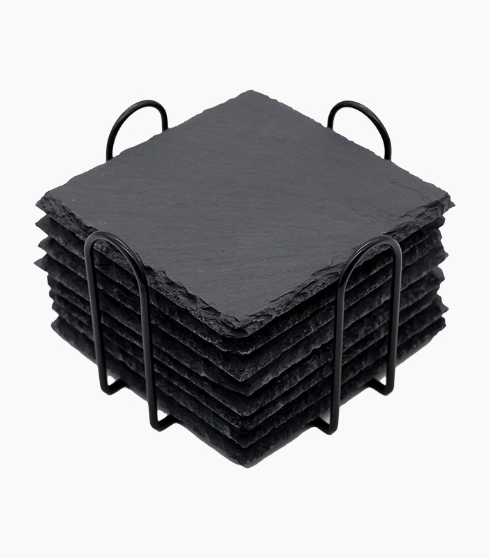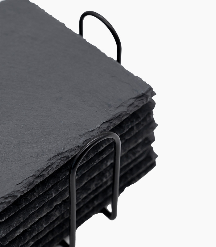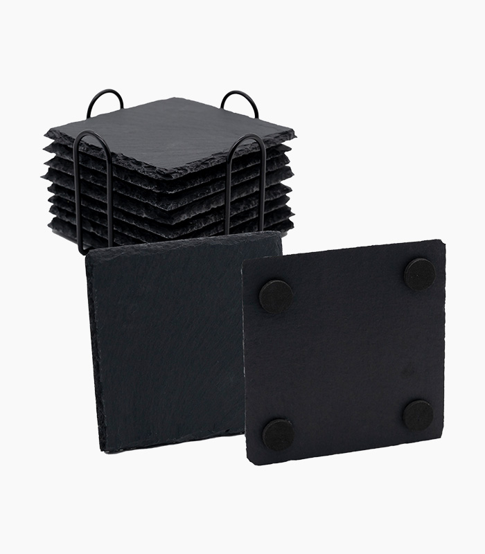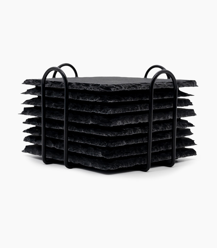Crni podmetači za čaše su dobar odabir za svaki stol. Jednostavno se uklapaju u svaki ambijent i svaki namještaj. Napravljeni su od prirodnog kamena i svaki od podmetača ima unikatne žilice po sebi.