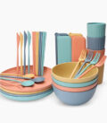 Set posuđa koji možete iskoristiti za različite namjene. Set je napravljen od plastike i sastoji se od 32 komada. Ovaj set je napravljen za 4 osobe. Boje seta su jarke i karakteristične i dat će jednu novu dimenziju vašem stolu.